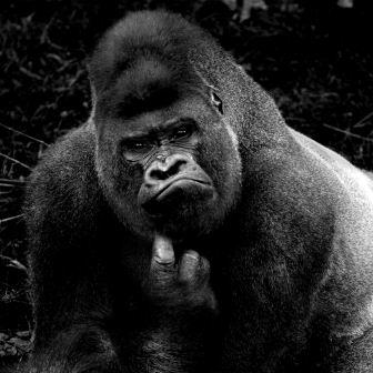Su proyecto -un viaje a los umbrales del hombre- no se hizo esperar. Dejó atrás su estudio y comenzó los trabajos de campo indagando sobre nuestro marchamo. Jesús Fernández Morán le abrió las puertas del Zoo de Madrid, residencia habitual del gorila Malabo, y Guillermo Bustelo las de su centro de recuperación, uno de los principales de Europa, en el que acoge a primates procedentes de zoológicos, circos, espectáculos callejeros y comercio ilegal. Visitó también a la familia de gorilas de Cabárceno, en Cantabria, de la mano de su cuidadora, Lucía Gandarillas, concluyendo así la parte iniciática de la tesis que hoy nos presenta sobre nuestro linaje.