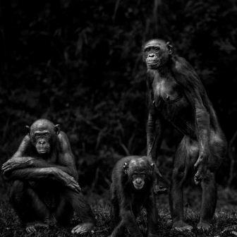 En el Santuario de Lola-Ya, a una hora en barco desde la pequeña aldea de Basankusu, fotografió a los bonobos, mucho más cerca de los humanos que de otros primates. En Lwiro, al Este del Congo, retrató chimpancés y en las montañas de Kahuzi Biega, gorilas. Y aún tendría que trasladarse a las selvas meridionales de Borneo, junto al mar de Java, para cautivar las imágenes de los “orang-utang”, los hombres de la selva, los más arbóreos de las cuatro familias de primates. Y en todos ellos encontró algo que hoy habita en nosotros mismos.