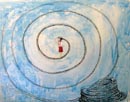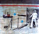Against all established stereotypes –those who make her known for her mastery of engraving and for treating the emigration issue– her focus of interest is that of the limit. Hence, the appearance in her work of such cloistered figures, borders, frames, confining peripheral lines, etc. “There is no total freedom”, she told me. “Total freedom is not possible for anything or anyone, because everything is limited by something. Total freedom would be not to exist”. Maybe that is the reason for the ubiquity of water in her creations, if not physically, by the use of metallic paper in allusion to the liquid, rich in symbolism. Sandra’s work is highly permeated by a symbolic language, though sometimes there is too much of literalism on it.