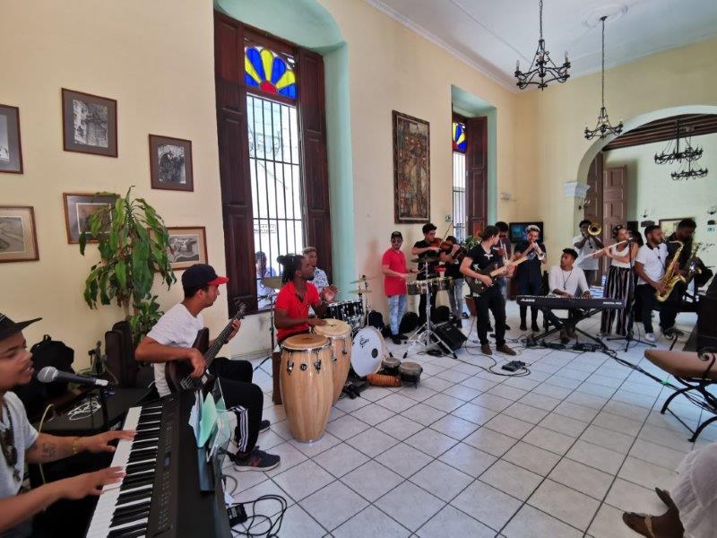 One of the prizes to the young winners of the program La Banda Gigante, the most recent participation space of Cuban television, was to share with a prestigious Jazz Band. And the opportunity was born in the Hostal de Tejadillo, located in the historic center of the capital.