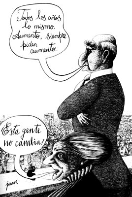 He was born in Lima in 1949. He studied Letters and Fine Arts at the Pontificia Universidad Católica del Perú, and History of Art at the Universidad Nacional Mayor de San Marcos. Since 1969 he’s created comics, caricatures and cartoons that have been published in Peruvian magazines and newspapers. In 1978 he put out his book entitled Making Comic Books, the first of its kind ever written in Spanish. In November 1979, he published the first episode of his character El Cuy, in La Calle. In 1997 he was appointed honorific professor of the University of Alcala, an institution that grants the Quevedo Award on graphic humor. He currently makes political comics for the Peru.21 newspaper and a shadow play parody on national politics: his famous Love Story column.