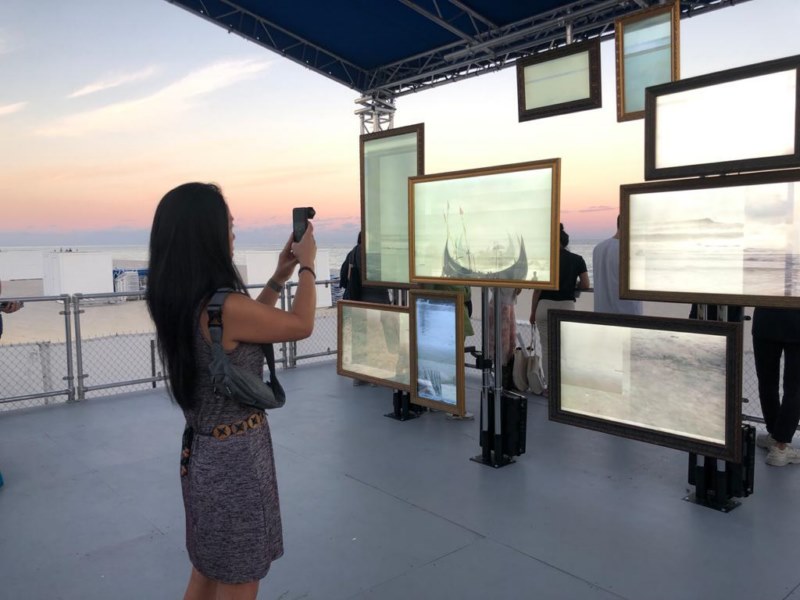 This is one of the two proposals brought here by the Clark Gallery (San Francisco, United States). It is undoubtedly the most attractive space where more than 120 galleries from Latin America, the Caribbean, Europe, Asia and the United States meet. There, with the sea in the background, gathered a set of 9 television screens decorated with gold-colored wooden frames, which reproduce a video installation with 11-minute sound that reproduces the sea and its migration stories - which flood the orb in these times with that global displacement-, titled Flight (Escape) 2019.