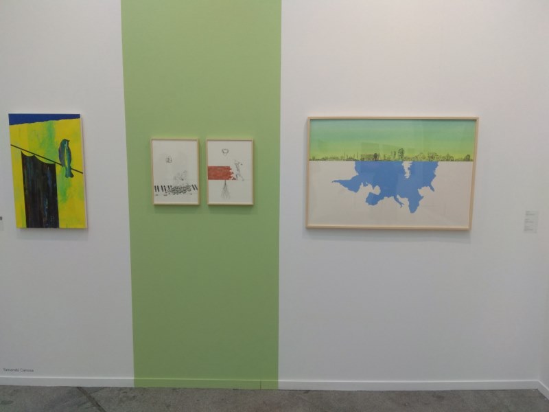 Coming from Lisbon, the Sào Mamede gallery, with the Portuguese Susana Chasse and the Spanish González Bravo and Manuel Salinas, has shown a series of abstract paintings where the protagonist is color. The Nuno Sacramento gallery is located in the small Portuguese town of Ílhavo, close to Aveiro, a town where opened its doors in 2003, until six years later it moved to its current headquarters. At the fair, it has only presented the Porto artist Teresa Carneiro, in whose works young women appear in an expectant attitude. Some wear a mask with very large ears reminiscent of carnival masks, although they can rather be related to the animal world. Anyway, her mastery of drawing is perfectly perceived. Another Lisbon gallery is Art Lounge Gallery with artists of different nationalities, highlighting the conceptual work of Valencian Carmen Calvo and Barcelona sculptor Mireia Serra.