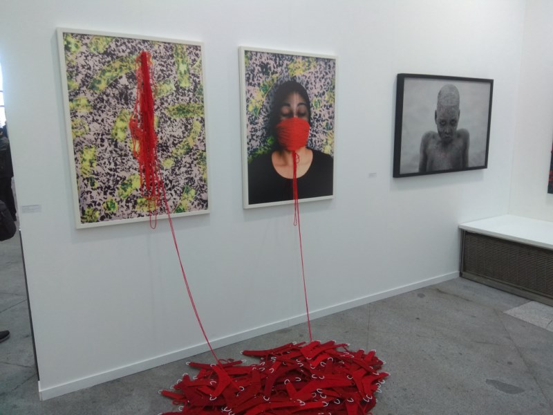 Four galleries from Portugal participate, including Paula Nunes Arte Contemporânea from Vila Franca de Xira, who has presented the work of various creators, among which the Brazilian Nina Franco stands out with two works that are intertwined as an installation, since they are hanging on the wall joined by hangers and red threads. The piece is titled Clandestinas (2019), created from painting, photography, as well as other various materials forming a conceptual work where the figure of the woman appears gagged, without having the opportunity to express her opinion.
