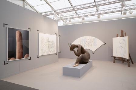 A more traditional approach at Sprüth Magers is enlivened by clever, illuminating connections between Thomas Scheibitz´s  paintings, an LED light work by Jenny Holzer, and a new site-specific sculpture by Thea Djordjadze. Victoria Miro’s three-person presentation of Conrad Shawcross, Secundino Hernández, and Do Ho Suh also demonstrates that, sometimes, a good booth requires nothing more flashy than the sensitive, sympathetic correlation of a modest number of artists.