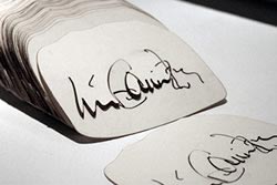 There are two works included in this exhibition where Camnitzer directly criticizes art and its functions, and he explores the relation among images, objects and texts: the emblematic “Plusvalia”, and “Firma por tajadas”.