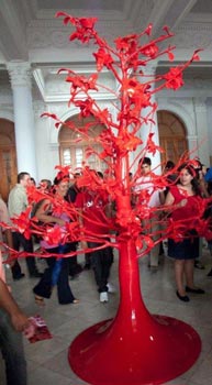 “The first things that meets the eye about Stainless is the idea-esthetic maturity and coherence of the artworks,” says Piter Ortega, the exhibition’s curator who sheds more light on this definition in the catalog’s forewords. “First of all, the importance of the Art-Science relation in the conception and materialization of the works, as well as the value and the impact of the tactile orders, the ones that really star in the works beyond the handpicked topics. This is linked to the recurrent use of eroticism and the marked ludicrous accent on both procedures and ideas for the sake of achieving surprise and irony as fundamental drivers.” Another element mentioned by Piter is the artists’ leaning to the monumentality of the size “from an esthetics very close to the visual show.”