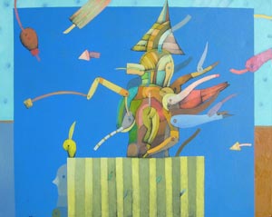 Over ten paintings included in Pajaristico series reveal the artist’s interest in birds –their shapes and colors–, through close-to-abstraction images. His visual strategy entails the decomposition and re-composition of shapes, environments, bringing about singular structures, with new life.