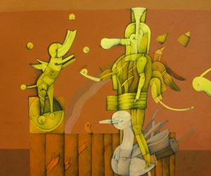 Mario Sanchez (1963), graduated at the Fine Arts Department of Concepcion University, is a locally acclaimed creator, especially since the foundation of Grisalla group–in the early 1990s–, along with other five artists.