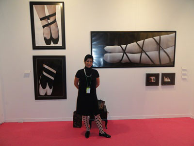 Coincidencias del genero is the project’s title, which has been specially commissioned for this event. We had showcased a similar proposal in Art Moscow and, thanks to the references on that event’s website, we were invited to come to Madrid. The collection stands out due to the confluence of several generations, so we can notice common elements –in terms of the conceptual and aesthetic treatment of pieces– and differences –mainly topical–, although the works target genre conflicts. Cirenaica Moreirawith pictures on white and black paper, in addition to a printed canvas on Piel de vaca series; Lidzie Alvisa on the adolescence; and Mabel Poblet, a young woman whose work shows profound interest on this job. I am very feminist. I don’t believe that saying that this is a three-woman project could privilege us, but kind of limit us”.