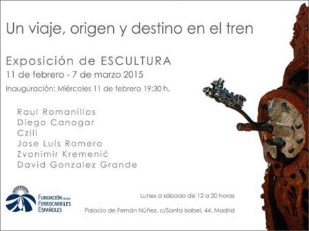 The Ferrocarriles Españoles Fundatation invites you to the opening of the sculpture exhibition titled “Un viaje, origen y destino en el tren”, which will take place on Wednesday, February 11 at 19:30 pm at the Fernán Núñez Palace.