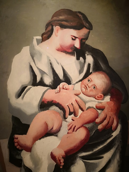 The life of Olga with Picasso coincided with the rise of the recognition of his work and a level of life that took them to important receptions or spend long seasons on the Riviera. The arrival of Paulo is also well represented in the expo, with numerous oil paintings, some world famous, such as "Paulo dressed as a Harlequin", from 1924.
