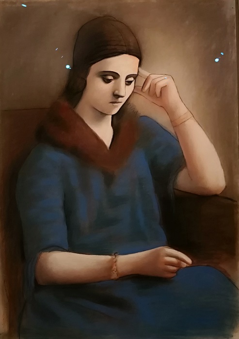 From their first meeting, Olga became the artist's favorite model. In fact, it was the female figure most represented by the painter in that decade and the next. One of the most important works of the exhibition, "Thoughtful Olga ", held in Paris in the winter of 1923, faithfully portrays the "Melancholy and thoughtful beauty " of the dancer, who saw her family (and her country) for the last time in 1915, because they were "trapped" in Russia by the historical events of the Bolshevik revolution and everything that came later.