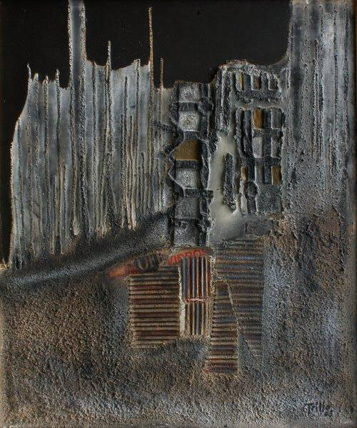 Matérico por excelencia y sin negar influencias de los grandes maestros como el catalán Antoni Taspié y el italiano Alberto Burri, Trillo fue perfilando la mezcla mixta a partir del asfaltil, el polvo de mármol y el cemento, para lograr a golpe de esfuerzo durante horas, obras únicas por su mensaje y plasticidad.