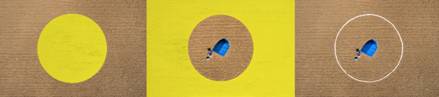 Martín de Lucas presenta como obra las fotografías cenitales de las Repúblicas tomadas mediante un dron en las que se ve la figura geométrica rodeada de un entorno natural: tierra, agua y centeno. También se exhiben en la muestra tres piezas audiovisuales, tomadas desde un punto de vista cenital, que, repetidas en bucle y reproducidas en 3 pantallas, envuelven al espectador. El resultado de estas Repúblicas Mínimas es un conjunto de obras tan sencillas en lo estético como profundas y abiertas en su interpretación y significado. Unos gestos tan absurdos e innecesarios como poéticos y cargados de ironía.