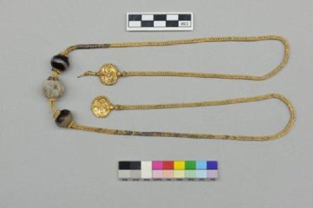 El Ministerio de cultura dijo que la tumba es el descubrimiento más espectacular de la era micénica en más de seis décadas. Contenía unos 1.400 artefactos, incluso joyas de oro y plata, tazas, vasijas de bronce, piedras labradas y una espada con incrustaciones de marfil y oro.