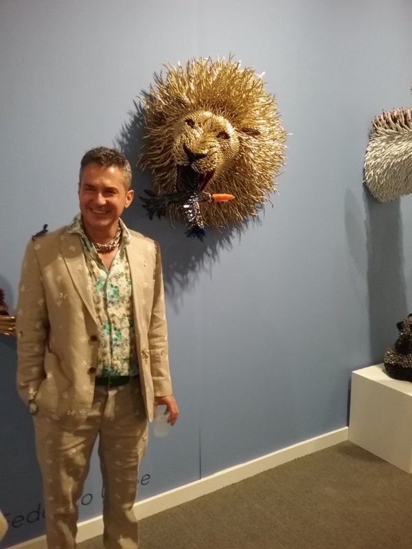 Federico Uribe, el destacado artista colombiano que un día decidió dejar los pinceles de lado y convertirse en escultor, deja boquiabiertos a los asistentes a la feria Art Miami, donde expone sus obras originales en Adelson Galleries (New York/Palm Beach). Allí muestra esas maravillas que crea su talento inagotable y siempre alerta hacia la Naturaleza que lo envuelve y motiva. Con un mensaje ambiental, ecológico y creativo aparecen sus trabajos donde nos enseña que no solamente los pinceles sirven para hacer arte. Sino todo aquello que está a nuestro lado y que podría ser inservible. El reciclaje y cualquier material encontrado por el camino vale en su mundo artístico. Hace arte a partir de objetos cotidianos; lápices, cables, fibras… se transforman en animales y cobran formas inusitadas. En este foro trae para sorpresa de todos, una mujer realizada con instrumentos médicos la cual nombró Selfie Esteem y que todos se quieren retratar con ella, para hacer honor al título y un guiño de complicidad con el inteligente y original creador. Hay también leones, y otros animales en peligro de extinción por el mundo que son creados con… balas, partícipes de la serie Quedamos en Paz. Estas son obras de denuncia directa que evoca la vida con objetos que matan. El arte es una ecuación muy acertada para decir y sobre todo para sensibilizar, desde esa dimensión humana que llega desde los adentros para hacernos cada día mejor. Eso se lee en muchas piezas que nos rodean en este encuentro que es una luz que llega en muchas dimensiones al hombre de hoy para que pueda o logre ser mejor…