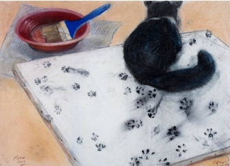 According to Maria Paula Zacharias in the text of the catalog accompanying the exhibition drawings are sent as letters. Everyone waits quietly the enigmatic response from the other. In a wooden box Unquillo to Martí¬nez, from Martí¬nez to Unquillo, a portrait, a vase of flowers, a cat ... and a half blank page. Halfway drawings the recipient must end.