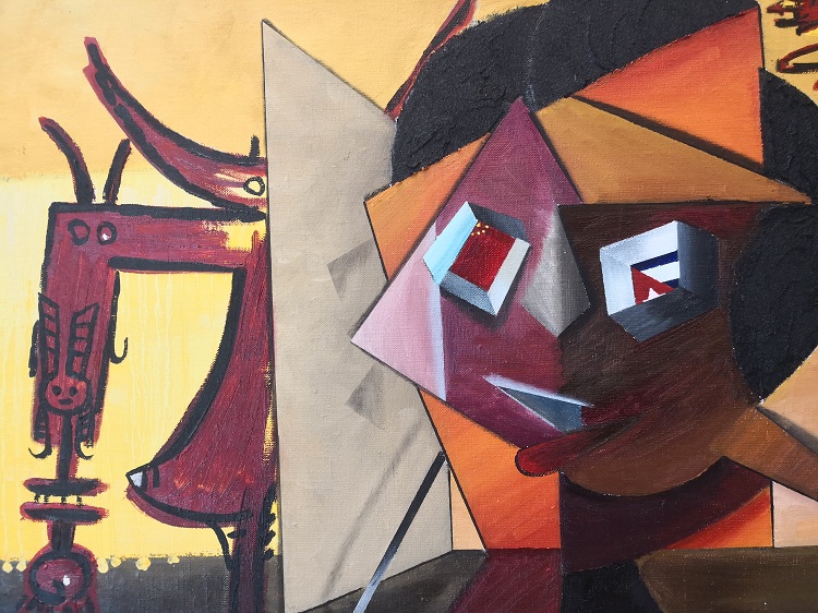 “Sí. Cada lienzo hace una reproducción de la obra del artista y un retrato suyo, a mi forma, cubista. Intento siempre investigar para ver cómo era la persona e intento plasmar un momento diferente o menos conocido de su vida. He hecho unas quince pinturas, pero tendría que completarla y hacerla más grande. El primero fue Picasso, por supuesto, luego Andy Warhol, Wifredo Lam… El problema de las series es que se agotan las ideas, así que hay que parar y esperar.”