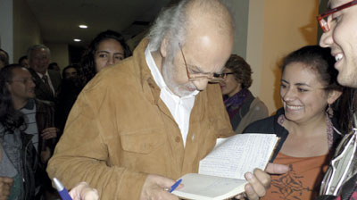 El protagonista del reportaje de Gabriel García Márquez La aventura de Miguel Littín clandestino en Chile atendió todos los pedidos de la noche que le hicieron los universitarios, y una vez que se apagaron las grabadoras, me atreví a pedirle una fotografía en su compañía y de paso a preguntarle si no estuvo en la sala donde se proyectaba su película.