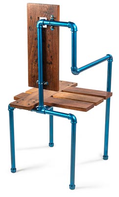 La forma artefáctica no desvirtúa la posibilidad de pensar en muebles “flexibles”, no por los materiales ni por la forma, sino por la infinita posibilidad de soluciones de ensamblajes que brindan las tuberías y la yuxtaposición de elementos muy diferentes en cuanto a textura (madera y metal), sensación que se percibe a través del tacto y la visión.