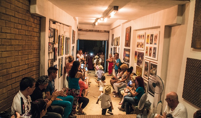 ▶ En la cada vez más apasionante ciudad del Valle de los Ingenios ha abierto sus puertas desde mayo pasado Gato Negro Open Studio, un espacio muy diferente en sus propuestas a la media de venduta de arte que allí pulula. Este da cobija a aquellos que sueñan despiertos. En palabras de la estudiante de arquitectura Daniela Arteaga, «…el sueño de reunir a muchos artistas en un espacio dinámico y versátil, para disfrutar de piezas únicas, nacidas de esperanzas y anhelos, y de la unión indisoluble de tradición y contemporaneidad. Un oasis de buen arte, entre playas y montañas, y las piedras ardientes testigos de siglos de historia. La buena música, el baile, el teatro, la literatura, el cine, la moda y las artes visuales se unen como forma de expresión e identidad». La mejor prueba es la imagen que publicamos, donde los niños son los protagonistas del desfile de ropas tejidas por los artesanos trinitarios. Pasen por la calle Desengaño número 356, donde los artistas Miguel Ángel Valdivia, Daniel Acebo, Edras Francisco Rodríguez y Yasiel Elizagaray siempre tienen nuestra revista, para que pase de mano en mano.