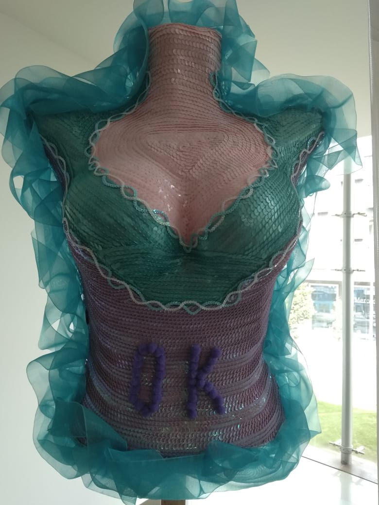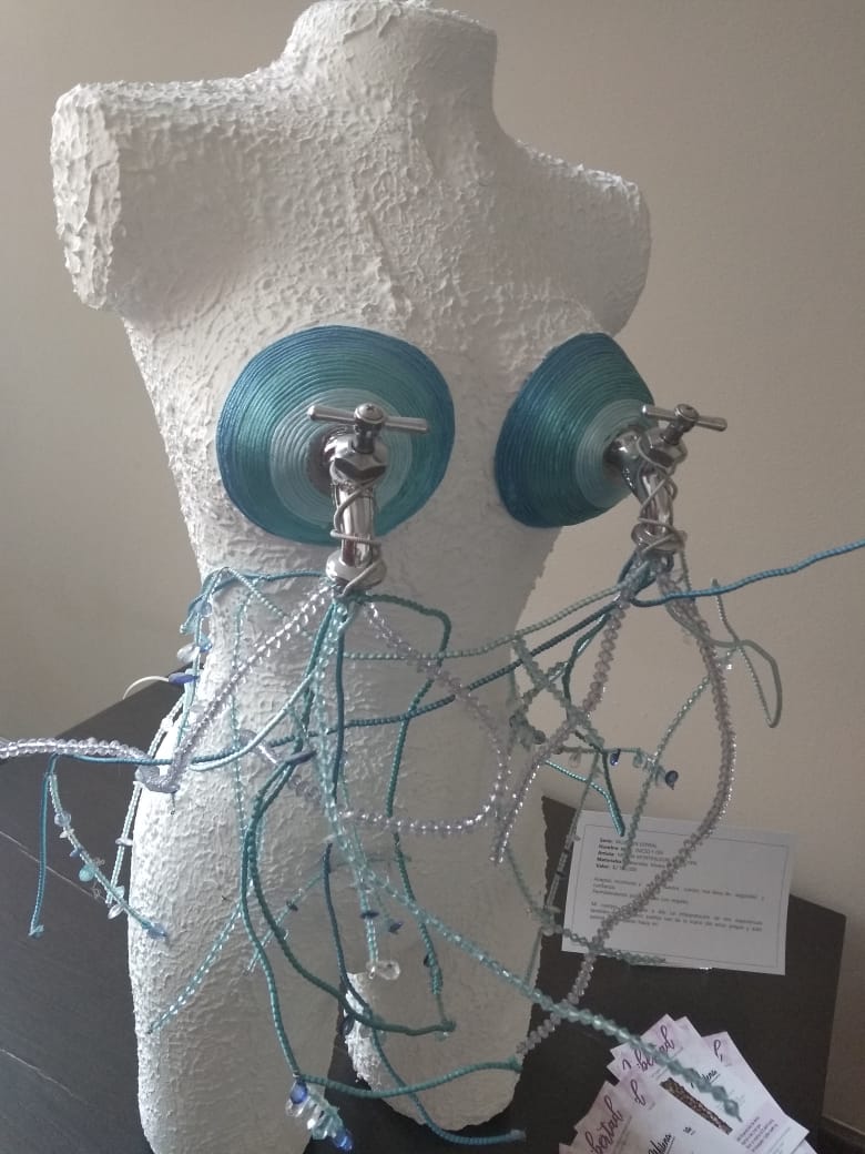 El plástico, el vidrio soplado, la madera, el yeso son transformados en figuras asimétricas plasmadas en maniquíes con bricolaje, donde se resaltan las lentejuelas y canutillos con encaje de colores fucsia, negro o rosa. El inconfundible sello de la artista busca generar una conciencia de prevención sobre el incremento de cáncer mamario, además insta a las mujeres a un desafío propio, a conocerse a sí mismas, a sanar emocionalmente.