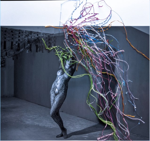 Respecto a las fotografías intervenidas, o sea, las que tienen una doble representación, en el anverso se aprecia la fotografía de una mujer llena de hilos de diversos colores que cubren su cuerpo desnudo, mientras en el reverso se observan unas aves u otros animales bordados. Por ello, la artista ve en esas obras unos “pequeños discos animados del siglo XIX que mostraban un pájaro en una cara y una jaula en la otra, puedes ver a los dos a la vez si te mueves rápidamente”.