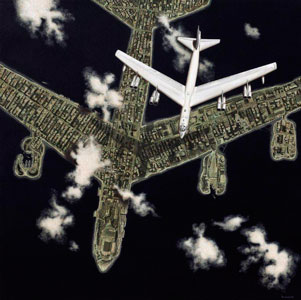 Fue la inquietud de Tamayo por el destino de la humanidad la que lo llevó a definir con La playa, una boca dispuesta a devorarlo todo. En ella quedaba ese forcejeo de la dualidad desarrollo/subdesarrollo como apetito, la violencia que resulta del trato entre las pequeñas naciones y economías y los países del primer mundo, lo regional en relación con las grandes urbes, al tiempo que ilustraba esa voz local tragada por el concierto global. Bombardero, por su parte, en su juego de sombras, resultaba un mal presagio, semejante al que proyecta sobre tierra el ave de rapiña. Su pájaro metálico con cuerpo de aeronave militar (similar al B-52F), anclaba en el presente un futuro de exterminio que se avizora en el cúmulo de tensiones que marcan el pulso de la actualidad.