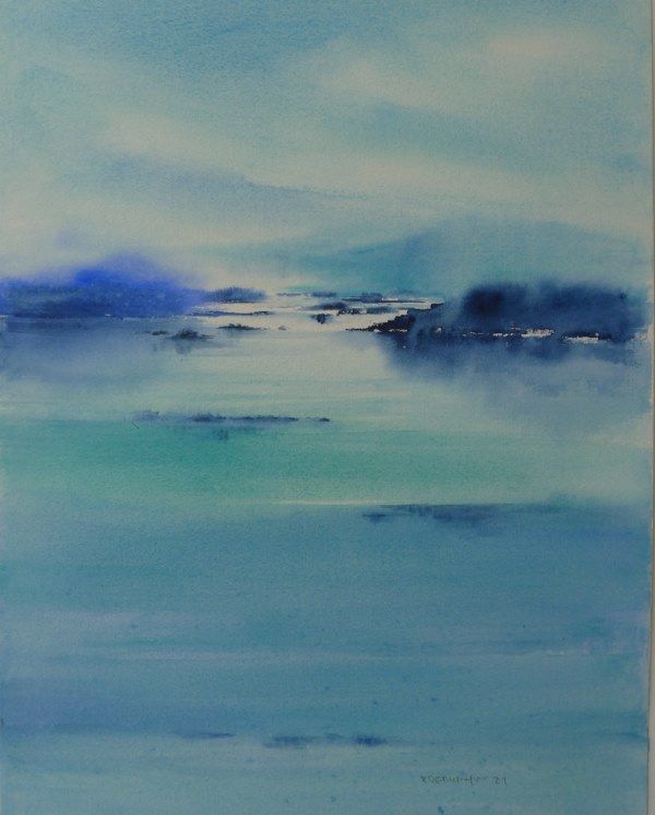 Para la artista la acuarela le transmite un estado de ánimo y emoción al pintarla, por ello “en algunas quiero captar la comunicación de belleza y poesía que me ofrece el mar. En otras queda patente la inquietud que me lleva a investigar e ir más allá de lo que la naturaleza me ofrece”. Este comentario lo realizó con motivo de una exposición que hizo en Port de la Selva (Girona) en 1992. Han transcurrido tres décadas y sigue pensando lo mismo, lo que significa que su amor por la acuarela no ha decaído, más bien es todo lo contrario, ya que nunca ha dejado de usarla en sus creaciones y ha sabido combinarla con perfecta armonía con el grabado.