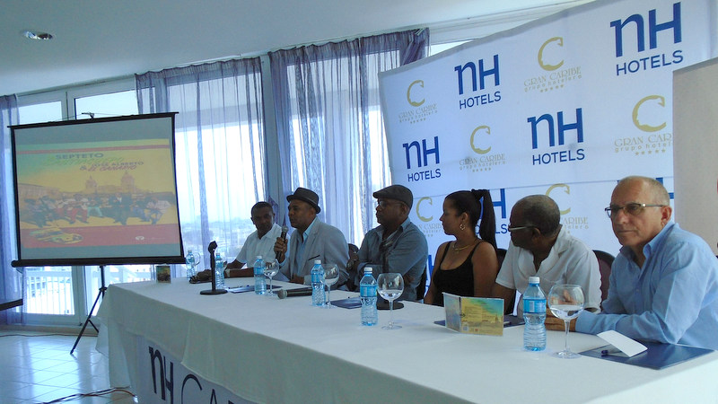 La conferencia de prensa estuvo presidida por El Canario ―quien se encuentra en la Isla para participar en el Festival Varadero Josone―, Fernando Dewar ―director de la agrupación sonera―, el Premio Nacional de la Música César Pupi Pedroso, y Mario Escalona Serrano, director general de la Egrem.