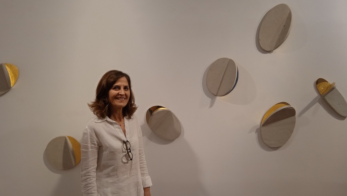 Al principio no sabía cómo trabajarlo, pero al final es todo prueba-error. Conseguí pegar una tela entre fieltro y fieltro, donde puse el pan de oro del que dispone la obra. No obstante, se podría haber realizado también en madera, ya que es perfectamente acoplable a mi fórmula habitual. Pero me parecía importante este aspecto de cuidar todos los detalles, ya que se trata de una exposición individual, donde lo que se cuenta lo cuento desde mi visión. Los materiales es algo que cuido mucho porque pienso que cada material te puede contar una cosa distinta.