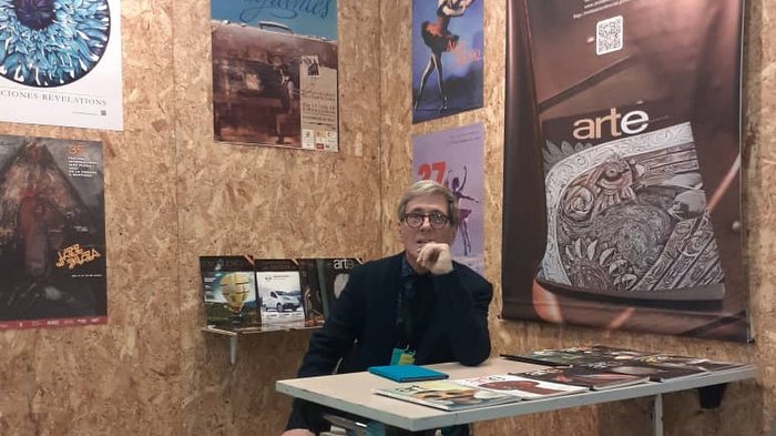 En portada: El periodista y crítico de arte Toni Piñera en el stand de Arte por Excelencias en la feria ARTBO 2022