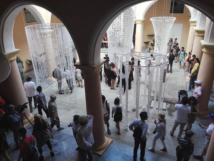 Una multitud sensibilizada con las artes visuales y ávida por constatar lo que se produce en otras partes del mundo arribó a ese bello inmueble de la parte más antigua de la ciudad, para apreciar las obras del chileno Camilo Yañez, la peruana Maya Watanabe, el haitiano Adler Guerrier, la salvadoreña Alexia Miranda, el colectivo mexicano TRES, el alemán Fernando Foglino y el egipcio Ibrahim Ahmed.