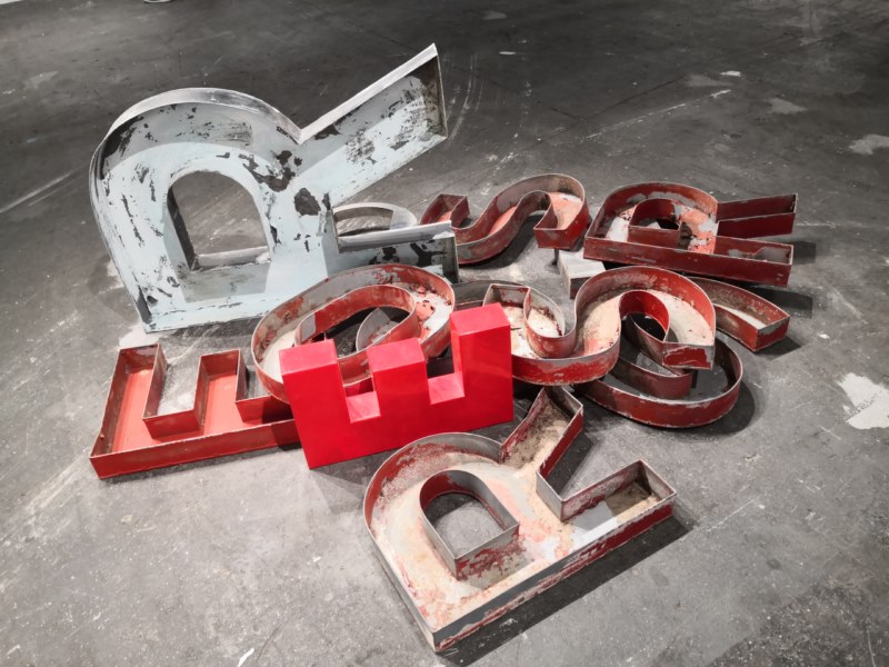 Es solo cuestión de tiempo ocupa una parte del Pabellón 7, pero también el centro de Madrid con vallas publicitarias que reproducen la obra en cuestión, creada en 1992; una frase en inglés sobre fondo negro, que resume en sí misma la principal característica del artista: decir mucho con casi nada.