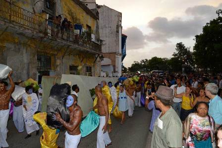 En la tarde de este lunes, 25 de mayo, un suceso poco frecuente sacudió la habitual rutina de las tardes habaneras. El maestro Manuel Mendive, Premio Nacional de Artes Plásticas 2001, ejecutó el performance “Los colores de la vida”, como parte de las acciones que se desarrollan en el ámbito de la 12 Bienal de La Habana.
