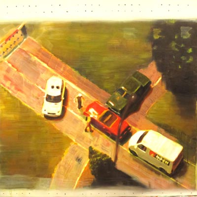 Avendaño’s painting sometimes adopts movie-making strategies, so pieces turn out to be “staged” scenes, a sort of fast pictures or sketches of shooting sets. The instants represented in Plot series look like photograms taken out of their temporal sequence, thus falling far from a naturalist and testimonial painting to create fictions and choosing an art that essentially is artifice.