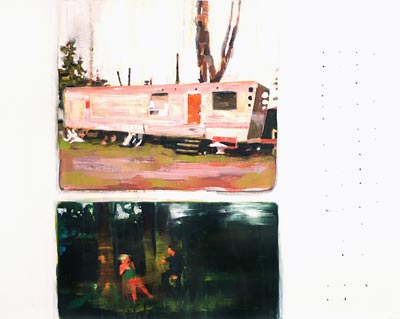 The series invites to reflect on the condition of narrative through the painting, since the truncated story delivered by the artist is, at the same time, the premonition of something that is going to occur. It’s all about intense painting that forces spectators to complete the suggested “plot”. Many of the pieces propose two images that are somehow linked, though the nexus is never explicit. The titles, which come out of literature, support the “construction” of stories.