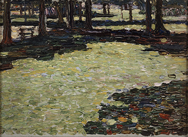 Profundamente impresionado por la series de pajares de Monet en la exposición impresionista de Moscú de 1896 y por la puesta en escena de Lohengrin, la ópera de Wagner, Kandinsky abandonó una carrera universitaria en derecho y economía para convertirse en pintor en Alemania, a la edad de treinta años. Además de llevar a cabo el itinerario clásico de estudios bajo la dirección de maestros como Anton Azbé y Franz von Stuck en Múnich, viajó por Europa (incluso hasta Túnez en 1904-1905) y permaneció en Sèvres, cerca de París, desde 1906 hasta 1907 (Parque de Saint-Cloud, 1906). Desarrolló una visión artística que abarcaba numerosos campos, como la pintura y la música, a través de las cuales buscó e impulsó lo que él definió como "lo espiritual en el arte", en el ensayo del mismo nombre, escrito entre 1904 y 1911 para estructurar sus ideas.