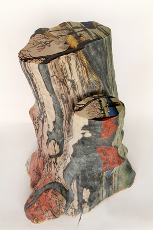 Las formas a modo de ramas del artista colombiano Miler Lagos están compuestas íntegramente por hojas de periódico densamente amontonadas y con los bordes lijados, lo que genera una superficie moteada con apariencia de tronco a la vez que un efecto de color madera. Las obras de Lagos representan tanto una fantasía de regreso (el papel volviendo a su fuente original) como una parodia de lo mismo: estas ramas quebradas están muertas, después de todo, y sus lánguidos desechos tienen un aire a cuerpo exhausto, algo desgastado. La densidad de la estructura de la obra recuerda, en su corte transversal, las estrías de la madera cortada, y resaltan la inutilidad de las historias antiguas que contienen ? éstas no pueden ser leídas, pero no lo serían, de cualquier manera.