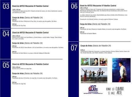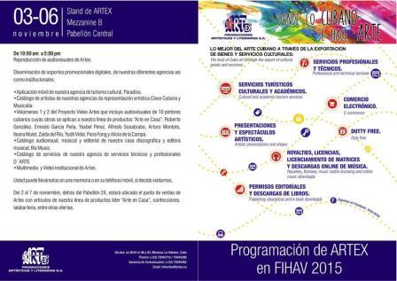 Arte por Excelencias se complace en ofrecer a sus lectores la programación que con motivo de la Feria Internacional de La Habana 2015 Artex ha preparado para quienes visiten el recinto ferial de Expocuba.