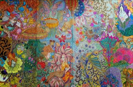 ATELIER 1022 exhibe durante Art Basel la obra “El Nacer de la Música” (de 95 x 72 pulgadas, en lápiz de color y tinta sobre papel) compuesto de 15 paneles individuales, por la artista Ellie Perla.