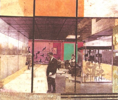 Esta exposición suspende al visitante en el tiempo, la atemporalidad, es un recurso muy estudiado por Regina. La tonalidad ocre y poco intensa nos recuerda a técnicas fotográficas utilizadas en los años 50, la tipografía clásica y cuidada nos recuerda a décadas congeladas en el tiempo. Seguimos con la idea intimista y de un escenario un tanto desolado. Las figuras estáticas intentan aparentar dinamismo pero a la vez se sienten congeladas. Movimientos a medio recorrido y lugares abandonados son el común denominador de estos collages.