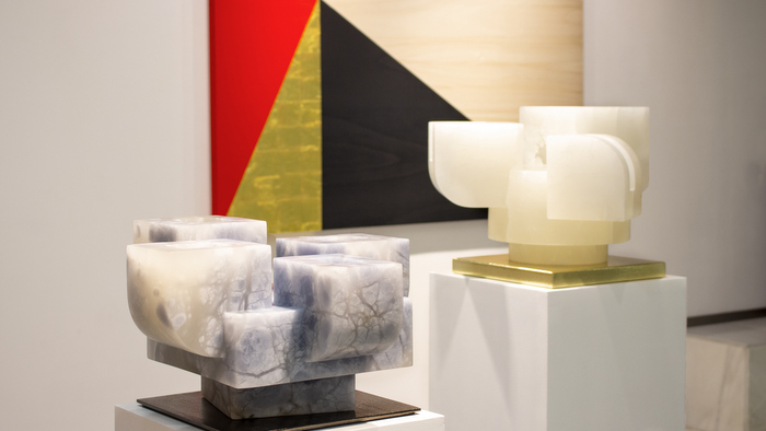 Pero estos artistas buscan ese objetivo de maneras distintas, y con materiales diferentes; mientras que Borja Barrajón recurre a la sustracción, a través de esculturas de mármol y alabastro, Isabela Puga emplea la adicción, por medio de cuadros dorados con oro de 22 quilates y pigmentos naturales. Así, la abstracción pictórica y escultórica se une para crear una muestra donde la materia juega un papel crucial, y en la que los elementos geométricos permiten abstraernos de la realidad hasta un plano de recogimiento y contemplación.