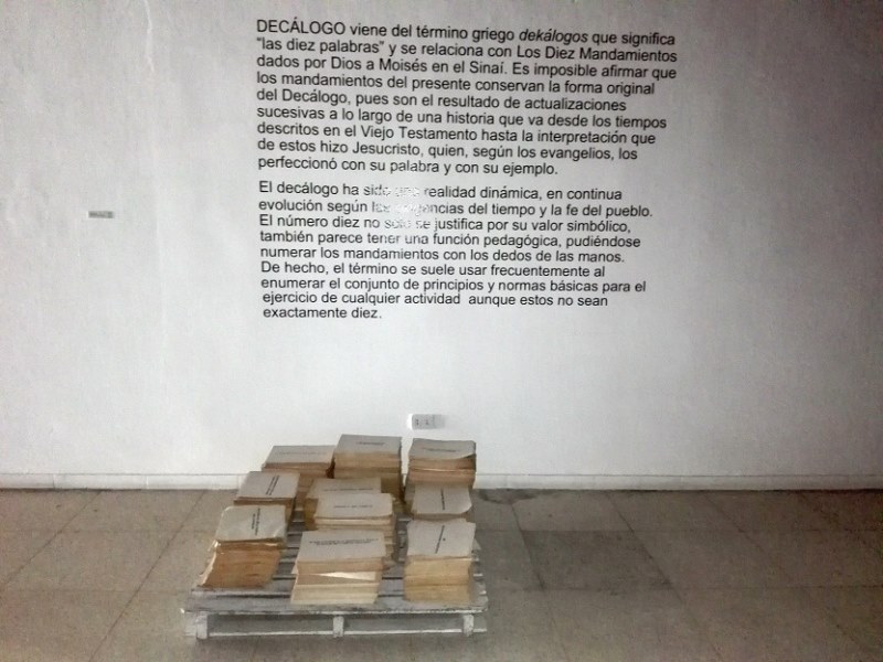 En el segundo salón de la Acacia, se agrupan obras de más reciente data y mayor conceptualización. Una de ellas lo es la instalación Decálogo (2007), conformada por diez torres de papel, en cada una de las cuales el visitante puede leer una aleccionadora frase de Fidel. Tan polisémica como el resto y compuesta por noventa imágenes - igual al número de años que vivió el líder- la serie Acto de última voluntad (2017-2018) ubicada a continuación, presenta en impresiones digitales sobre PVC el cotidiano tributo post mortem de que éste es objeto, pese a su deseo expreso.