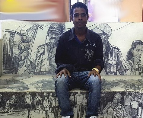 El dibujo, con grafito o carboncillo, ha ganado en perspectiva con la formación académica que tuvo este creador en la especialidad de escultura.