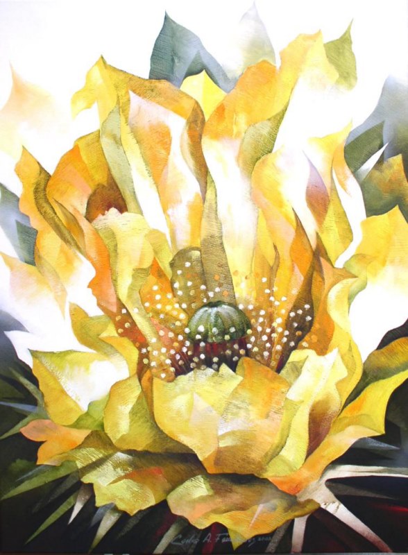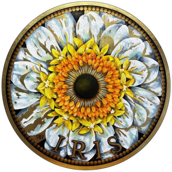 Como si fueran ojos, ubica las flores en esos formatos circulares, que parecen mirarnos. Con unos iris resplandecientes que cambian de color según el tiempo... del artista. Un tema que para el desata muchas interrogantes y seducciones plásticas que lo animan a continuar por los senderos de la Naturaleza, una y otra vez. Y según ha comentado el creador "abordo el mundo de las flores, no como bellos elementos en un jarrón, ni como estudios botánicos, sino que llegan a los lienzos representando seres que nos tratan de igual a igual, que son redescubiertos (sin ideas preconcebidas) bajo esa iluminación inhabitual que menciona Carpentier. Las flores se nos revelan, pues, como símbolos de una vida tan importante y diversa que de la supervivencia de ellas depende la nuestra como especie. De una vida que una vez percibida nos habla con el susurro del viento y, a través de ellas, nos devuelve la mirada".